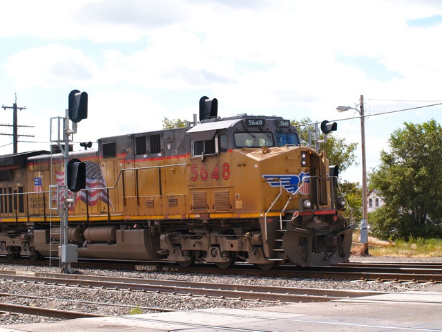 The UP then provided a couple of westbounds, though the yard seemed active too, just out of sight. The coal train's trailing DPU had a door swinging in the breeze, and we played tag with that train most of the way to North Platte.